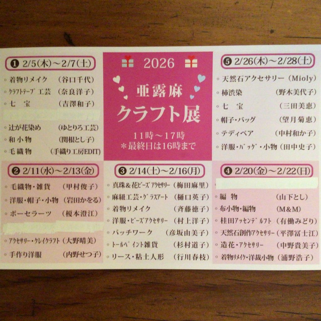 本日は、2026亜露麻クラフト展の第一回目の作家さん達による