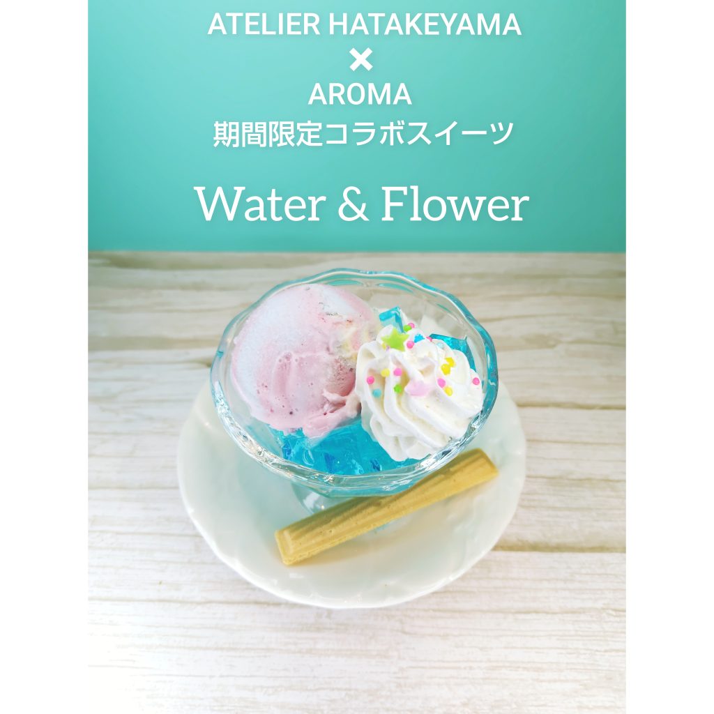 畠山さんの器の世界(ブルーやピンク)とイメージて作られた期間限定のスイーツ「Water&Flower」も1階カフェにてお楽しみ頂けます!